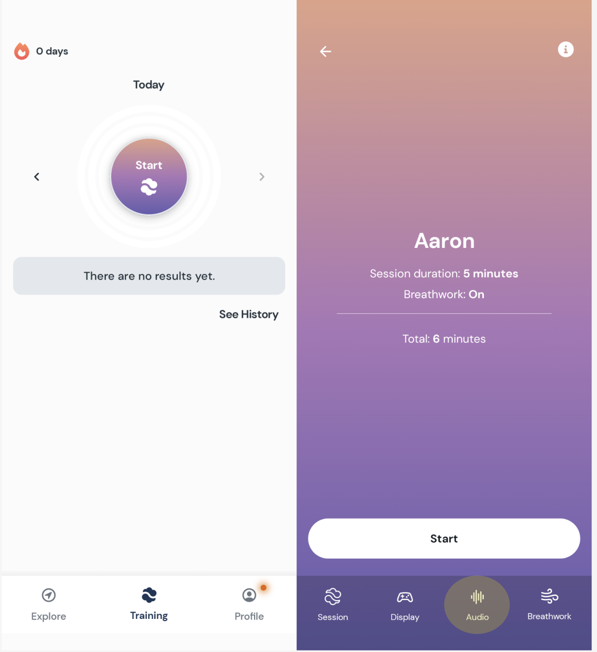 Start a training session or go to the Profile tab