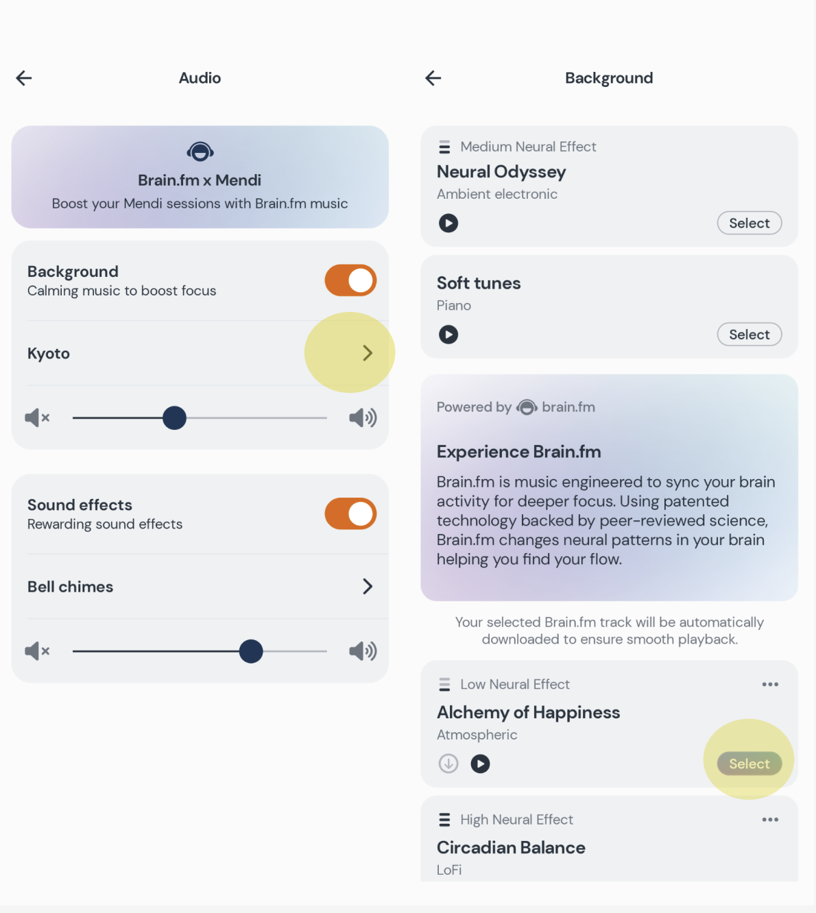 Mendi now includes an optional Brain.fm audio integration to support your focus during training sessions.